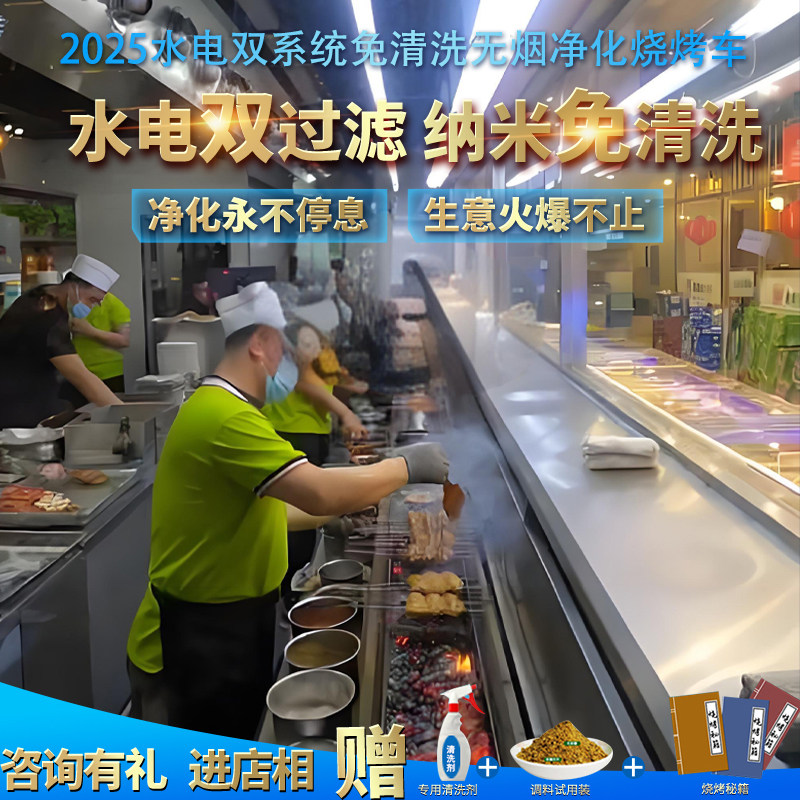 水电复合无烟净化烧烤车环保高端商用免清洗移动烧烤炉净化器烤炉