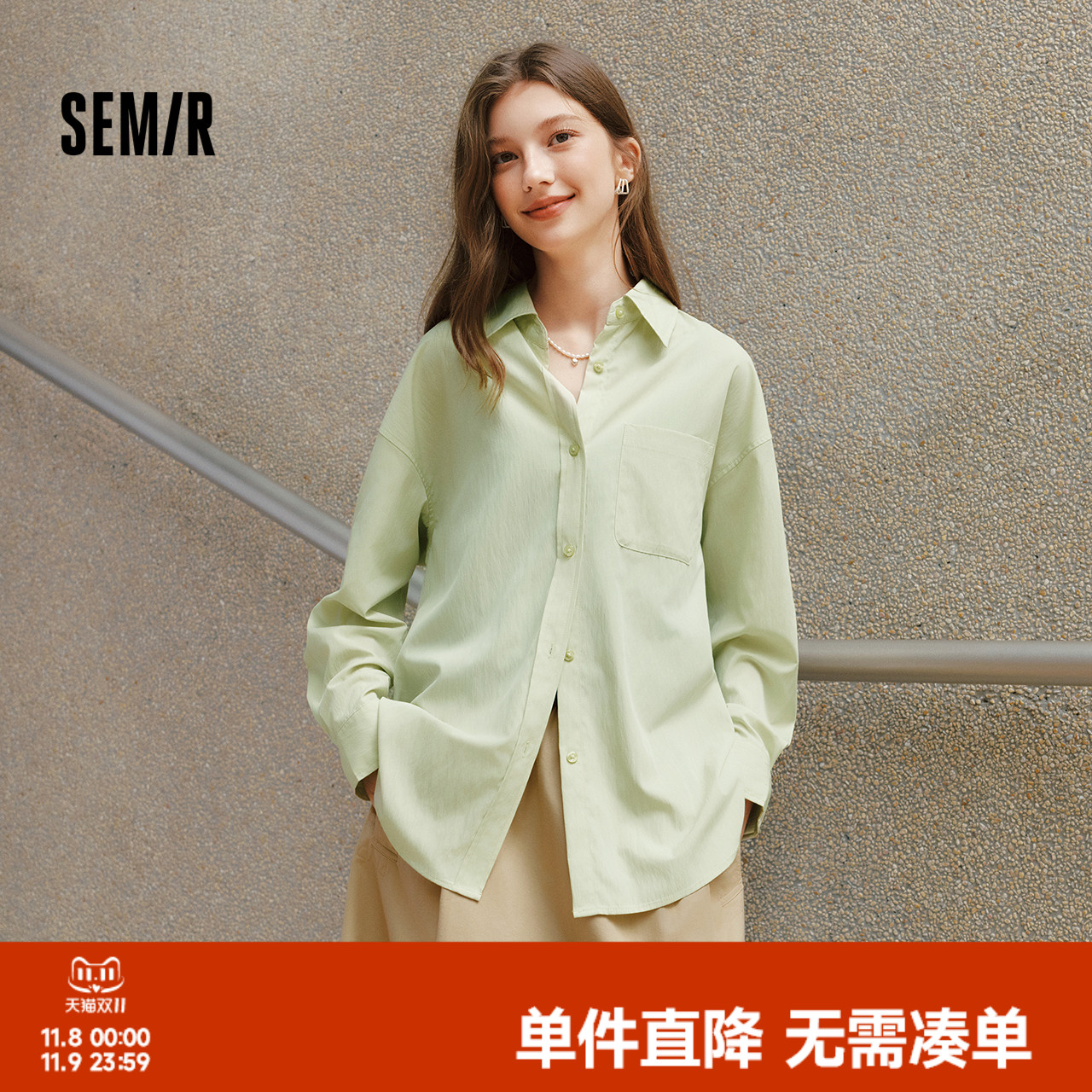 [商场同款]森马长袖衬衫女上衣纯色衬衣短背心2025春季新款两件套
