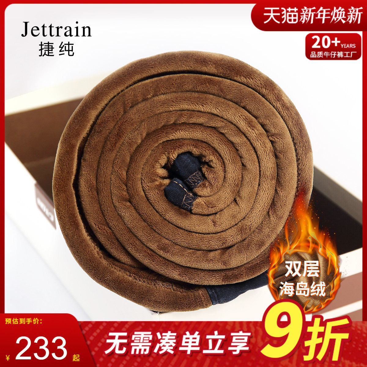 捷纯冬季加绒加厚牛仔裤女小脚莫代尔高腰四面弹力保暖修身铅笔裤