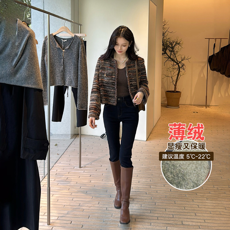 加绒高腰小脚牛仔裤女显瘦2025秋冬新款紧身提臀加厚百搭铅笔裤子