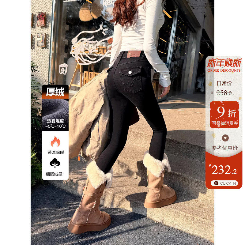 超火紧身加绒牛仔裤女冬加厚新款丰胯小脚裤蜜桃臀铅笔裤时尚靴裤