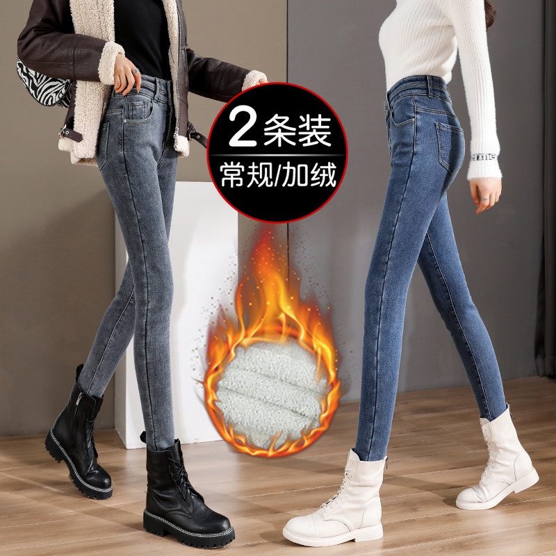 加绒牛仔裤女冬季2025年新款秋冬高腰显瘦加厚保暖紧身小脚铅笔裤