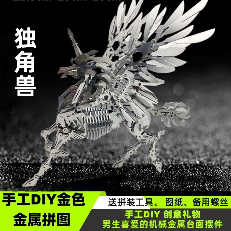 钢魔兽3d立体金属模型小独角兽不锈钢拼装拼图机械组装高难度玩具