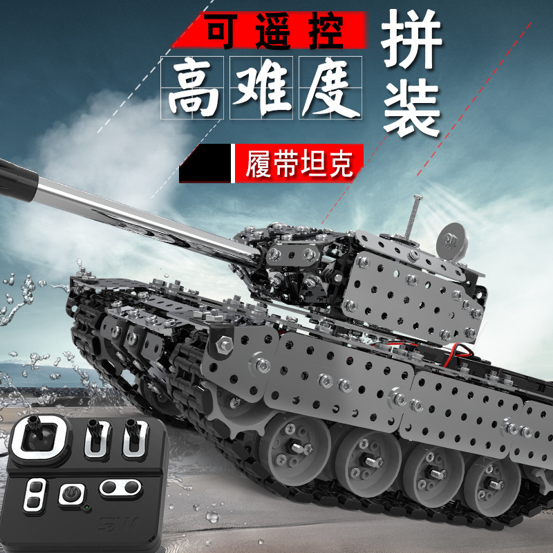 益智玩具拼装积木玩具男孩组装遥控坦克成人高难度3d立体金属模型