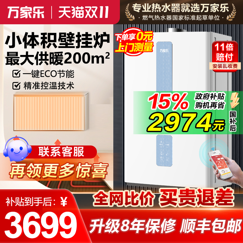 政府补贴万家乐壁挂炉天然气家用地暖锅炉燃气壁挂炉采暖热水两用