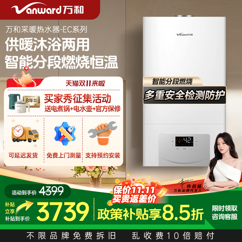万和EC燃气壁挂炉采暖炉两用天然气家用地暖锅炉暖气片洗浴热水器