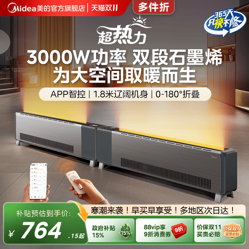 [多地次日达]格力家用防水踢脚线取暖器石墨烯速热暖风机地暖电暖