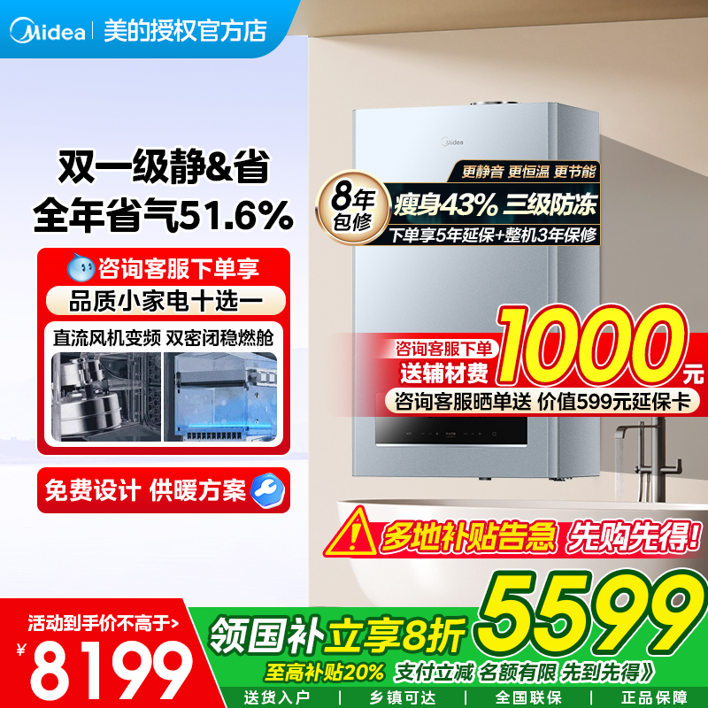 【补贴】美的燃气壁挂炉一级能效采暖冷凝式两用天然家用地暖R53