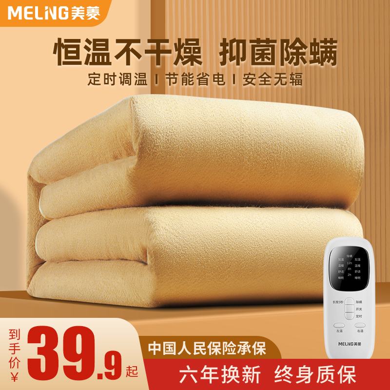 美菱电热毯双人电褥子单人加热地垫家用地暖水暖毯官方旗舰店正品