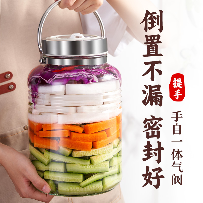 韩式泡菜罐腌菜缸玻璃老式家用四川咸菜罐酸菜坛加厚带盖密封大号