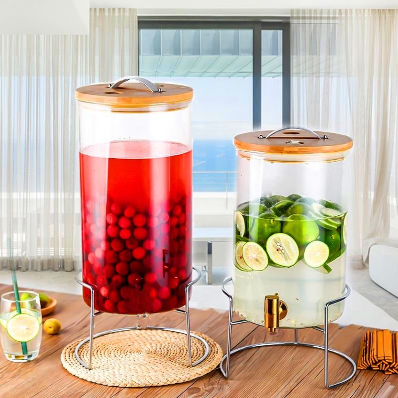 自助饮料桶果汁罐带龙头玻璃瓶泡酒桶自助餐果汁鼎茶桶柠檬茶容器