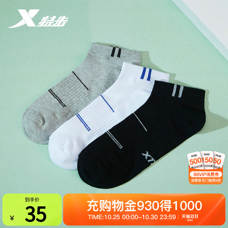 特步徒步袜3双装男袜短袜新款简约舒适透气跑步篮球袜棉袜短袜男
