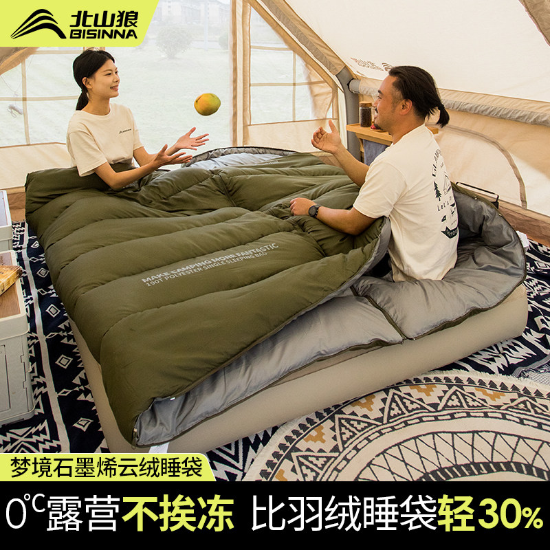 北山狼睡袋成人户外露营四季通用款石墨烯加厚防寒冬季办公室午休