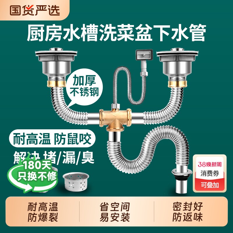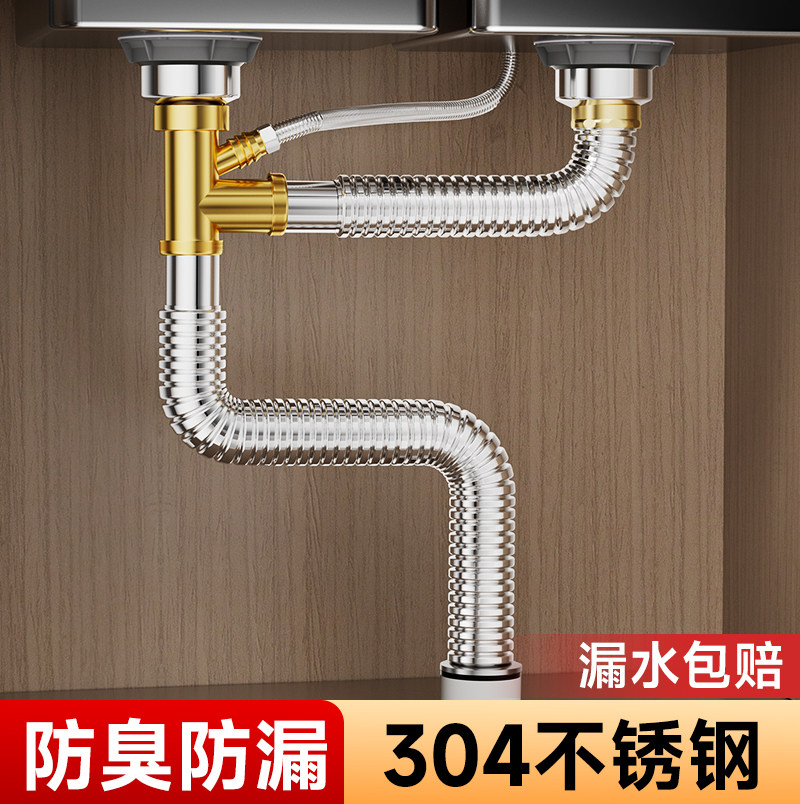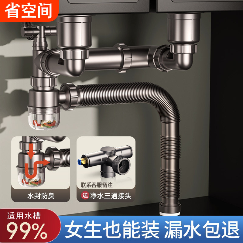 厨房洗菜盆双水槽下水管配件不锈钢排水管防臭洗碗池下水器全套装