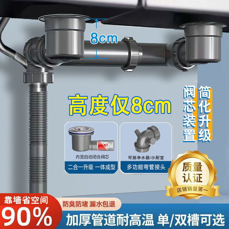 欧顺诺水槽下水管套装组合侧排超薄厨房菜盆排水管节省空间全套装