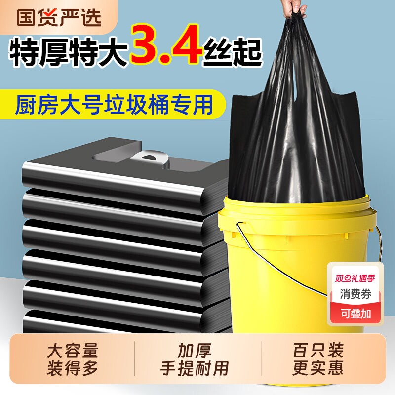 大垃圾袋大号家用加厚手提式商用餐饮厨房超大环卫户外水桶塑料袋