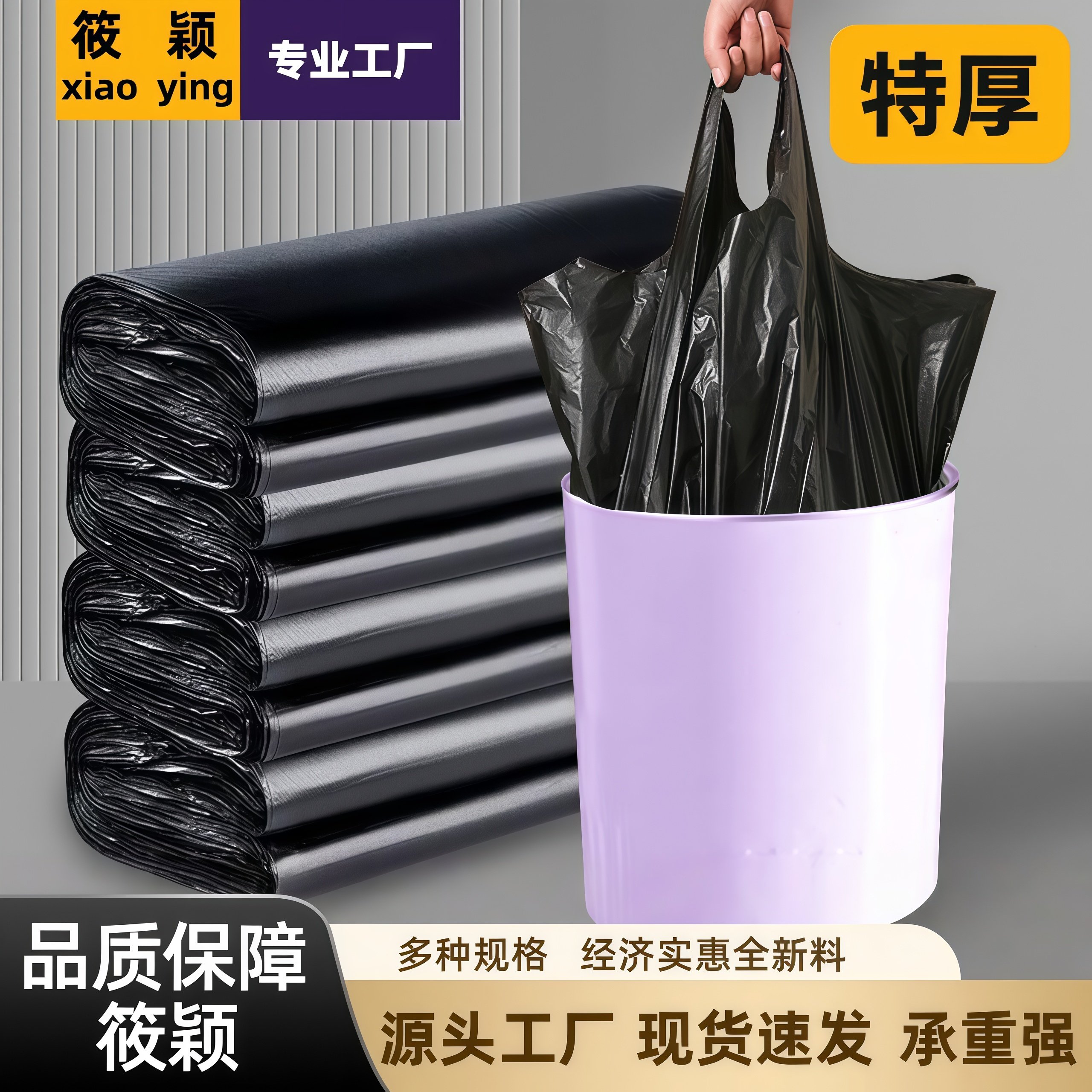 整箱加厚垃圾袋大号家用宾馆手提式一次性办公室用小号商用实惠装