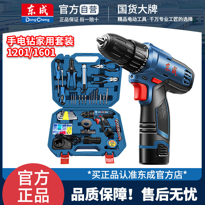 东成12/16V手电钻套装家用工具充电式冲击钻锂电池手钻电动螺丝刀