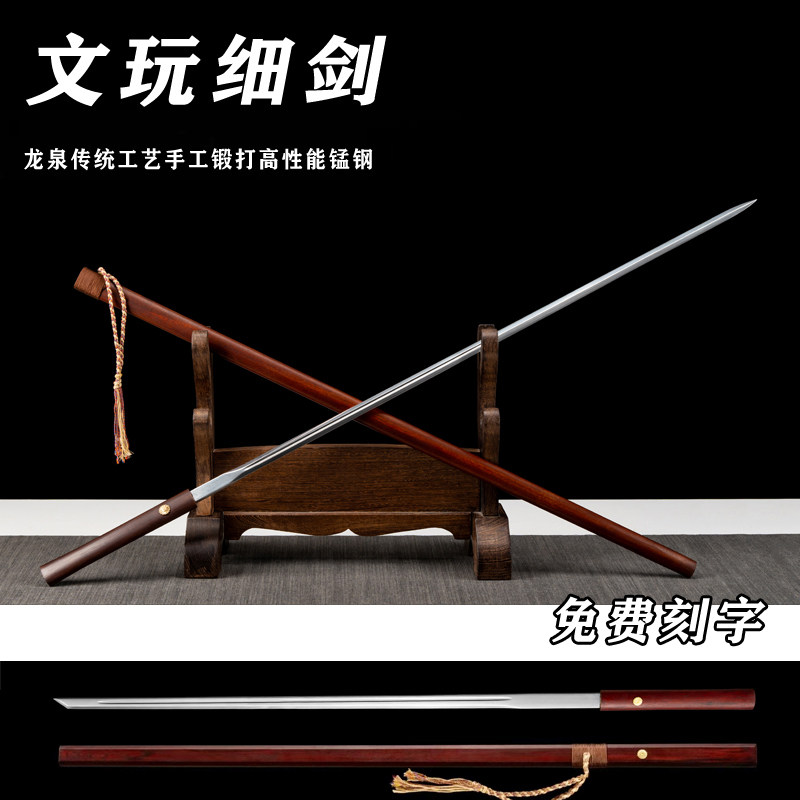 细剑文玩细刀龙泉市高锰钢一体窄剑唐剑唐横刀文玩宝剑长剑未开刃