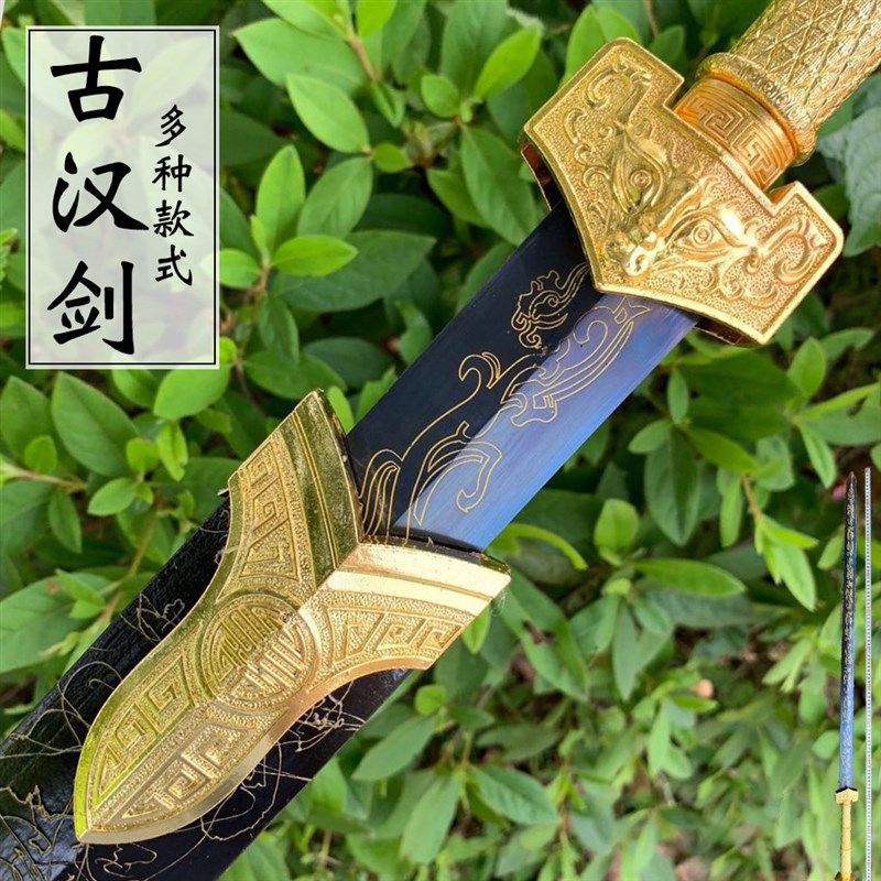 汉剑 镇宅宝剑长剑古剑防身冷兵器道具摆件高锰钢一体刀剑未开刃