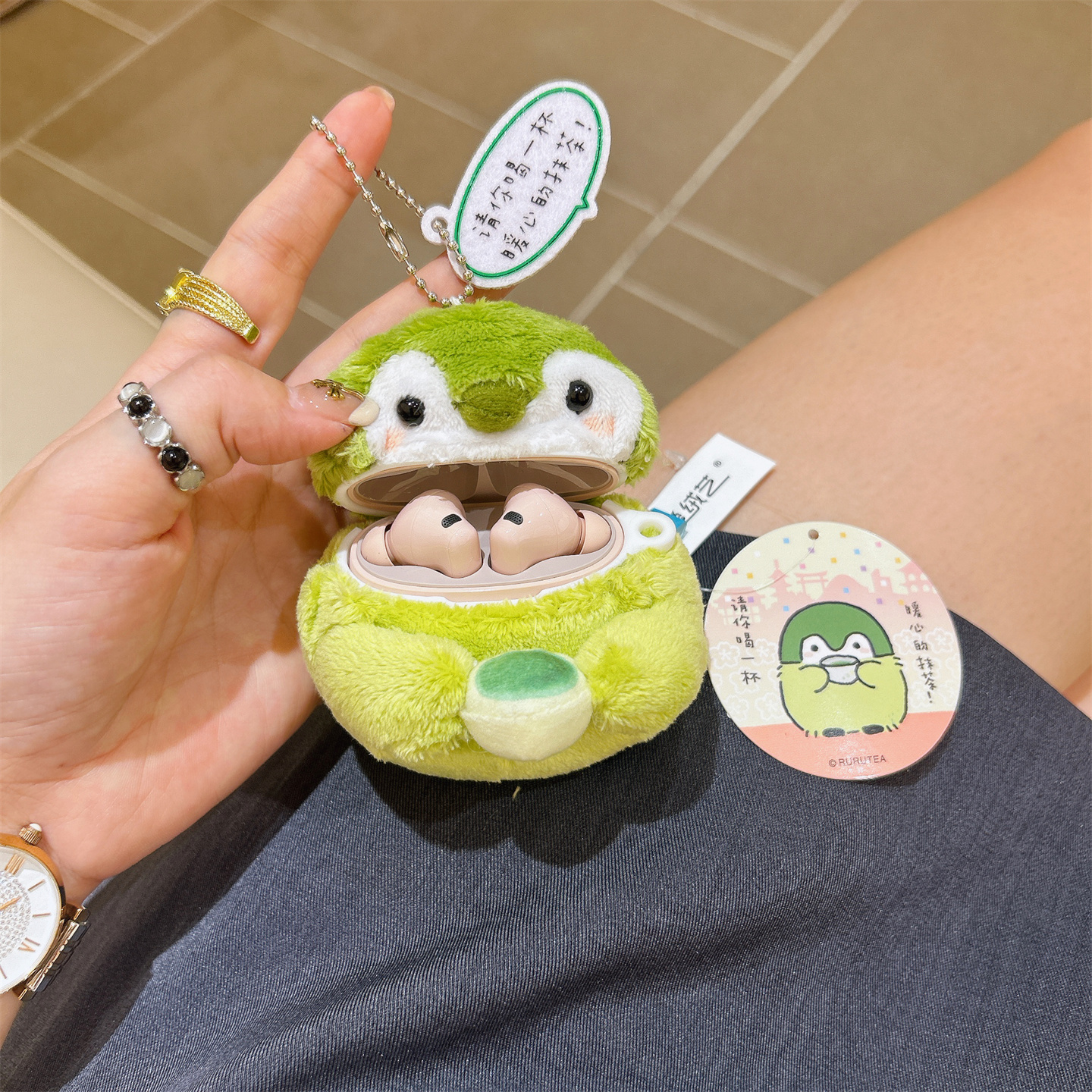 适用华为freebuds7i保护套毛绒企鹅绿色freeclip保护壳无线蓝牙耳机套苹果airpodspro3代秋冬毛绒6i盒se3企鹅