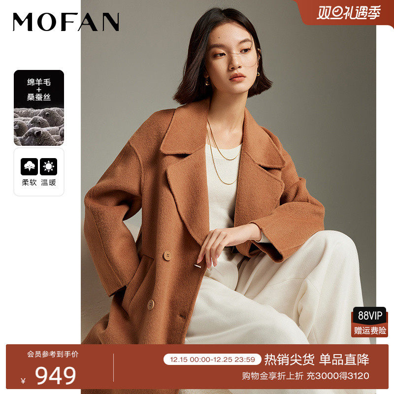 时髦绵羊毛大衣女中长款MOFAN摩凡2025冬新款骆驼绒休闲毛呢外套