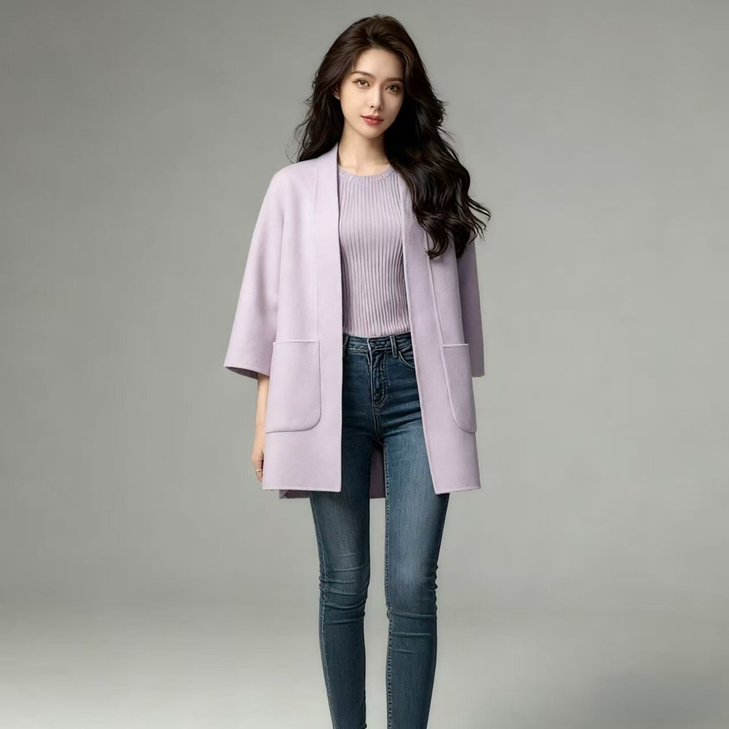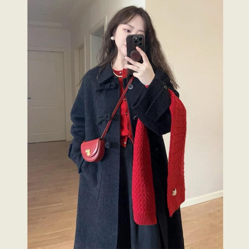 2025秋冬季毛呢外套冬 宽松中长款V领开衫 温柔风休闲百搭大衣
