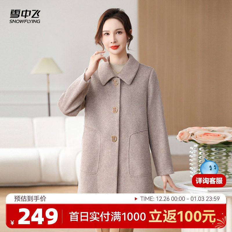 雪中飞2025秋新款女士妈妈中长款休闲毛呢外套上衣时尚宽松洋气