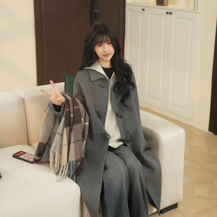 灰色双面羊毛大衣女2025年冬季中长款休闲廓形宽松赫本风毛呢外套