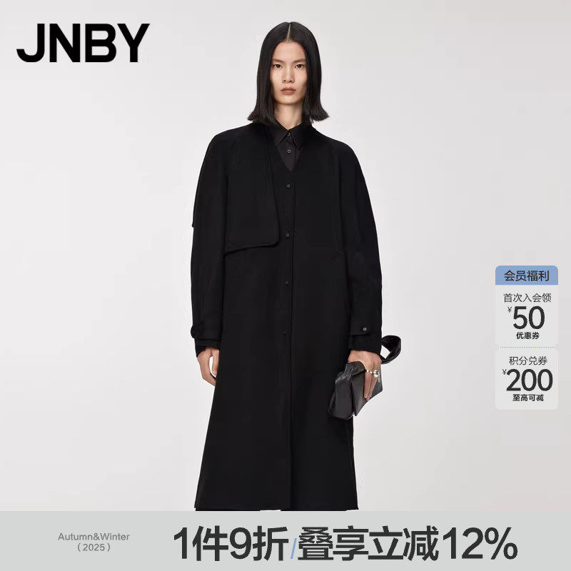 JNBY/江南布衣秋冬毛呢大衣中长款含羊毛羊绒宽松休闲收腰外套女