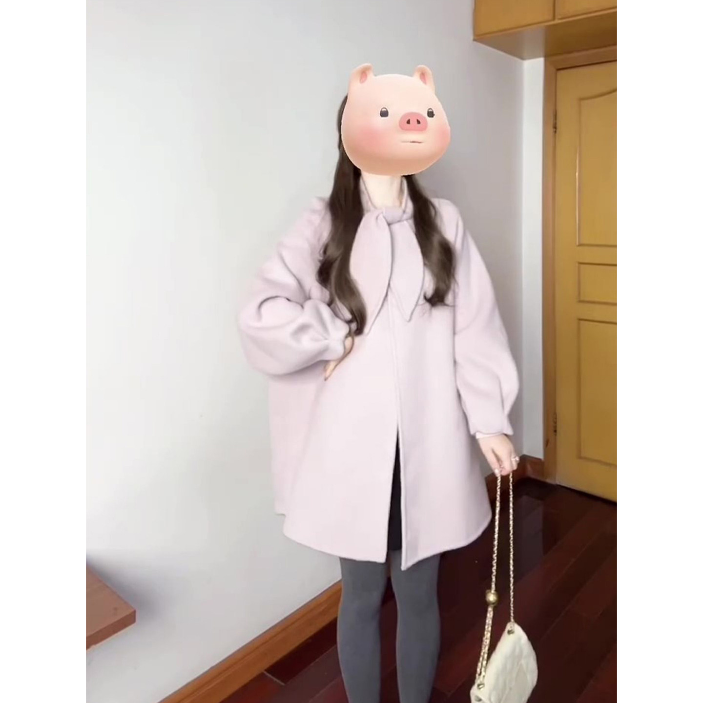 韩版温柔风减龄粉色毛呢外套女秋冬季新款时尚休闲中长款呢子大衣