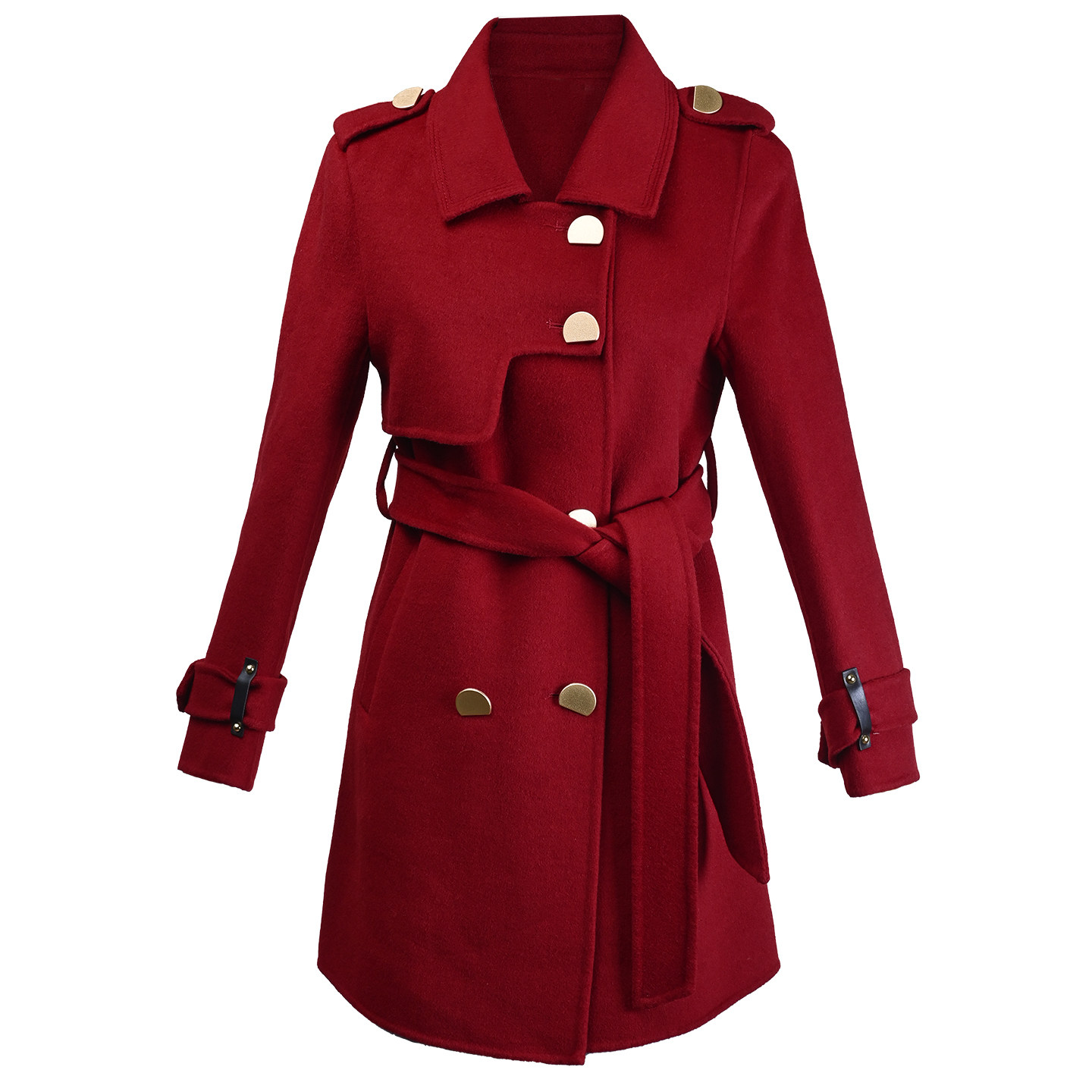 双面绒女毛呢大衣中长款2025秋冬无羊绒双面呢大红色休闲毛呢外套