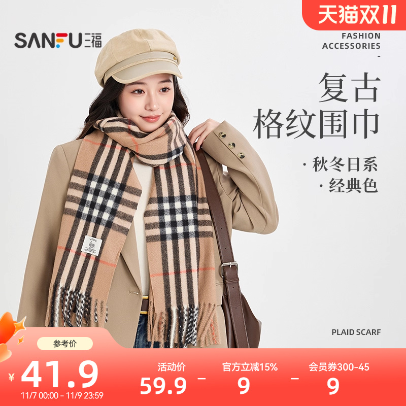 - 格子羊绒围巾