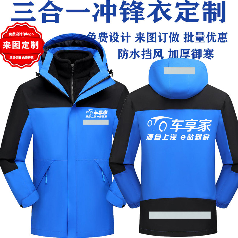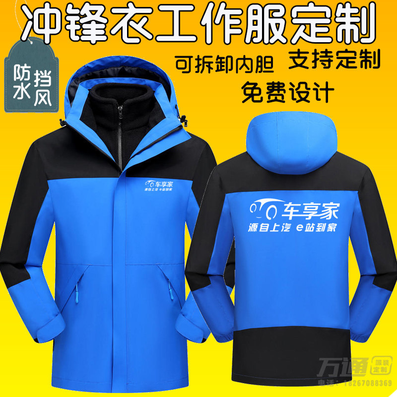 车享家4S店工作服外套冲锋衣可拆卸汽车工装车友会定制印字绣LOGO