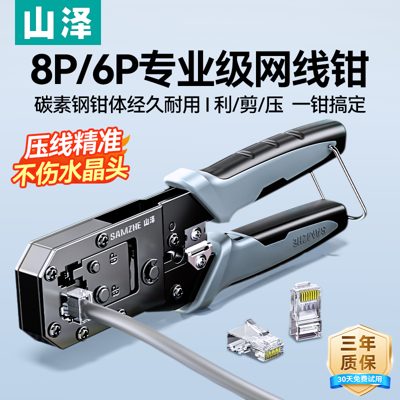 山泽网线钳专业级家用网线钳子水晶头压线钳子网络工具套装超五6六类7七类多功能接头网钳6P8P刀片剥剪夹线刀