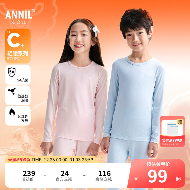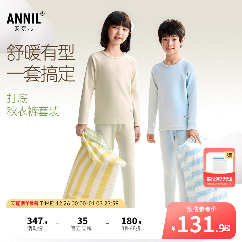 【5A级抗菌】安奈儿童装男女童秋衣秋裤套装2025秋新款打底睡衣裤
