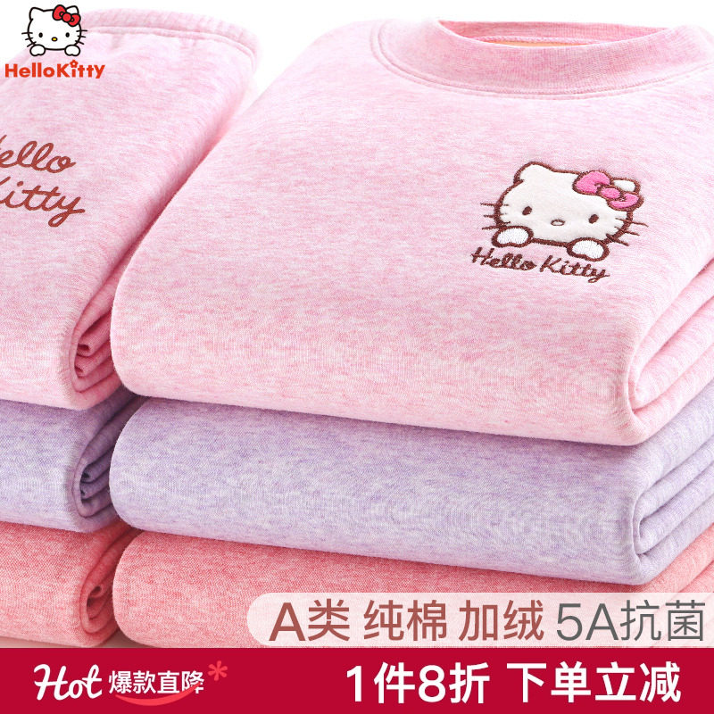 猫人儿童保暖内衣套装加绒女孩大童秋衣秋裤绒德青少年初中学生冬