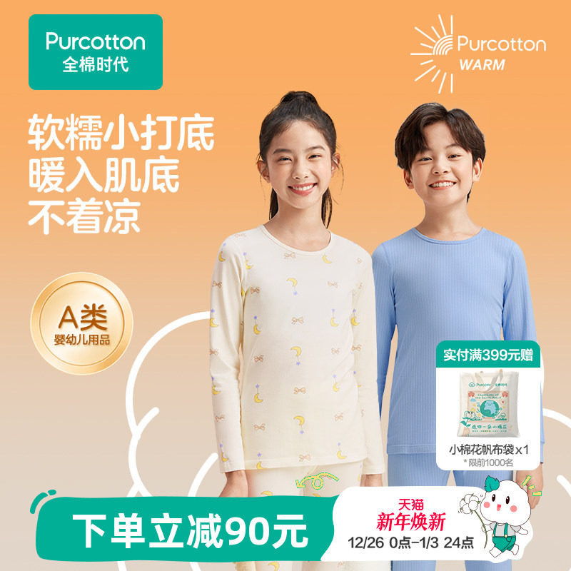 全棉时代秋冬季少年少女学生风柔棉保暖内衣套装男女中大童秋衣裤