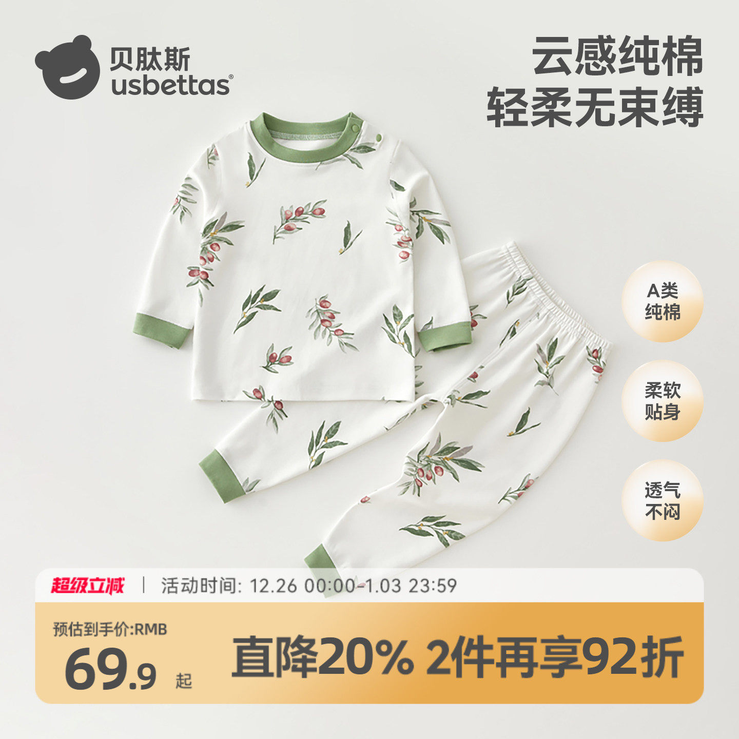 贝肽斯儿童秋衣秋裤纯棉保暖宝宝分体睡衣男童女童婴儿内衣套装S