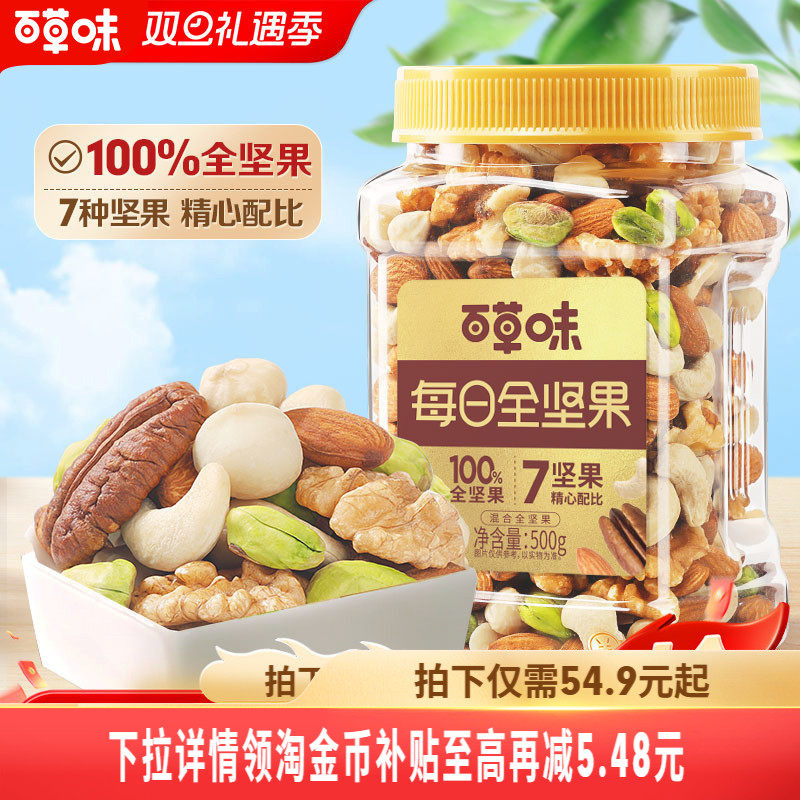 百草味7种纯坚果每日坚果500g健康低GI混合全坚果仁开心果腰果