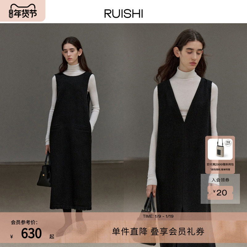 RUISHI芮时 前后两穿简约肌理感羊毛背心裙A字无袖连衣裙女秋冬季