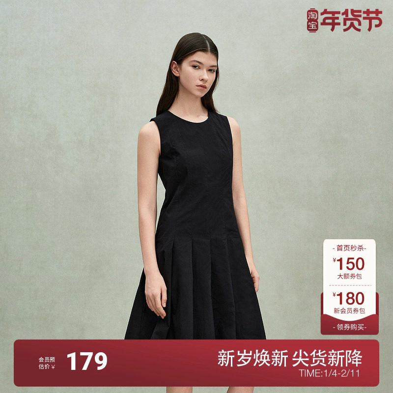 ochirly欧时力 立体压褶无袖连衣裙女A字背心裙显瘦2025夏季新品