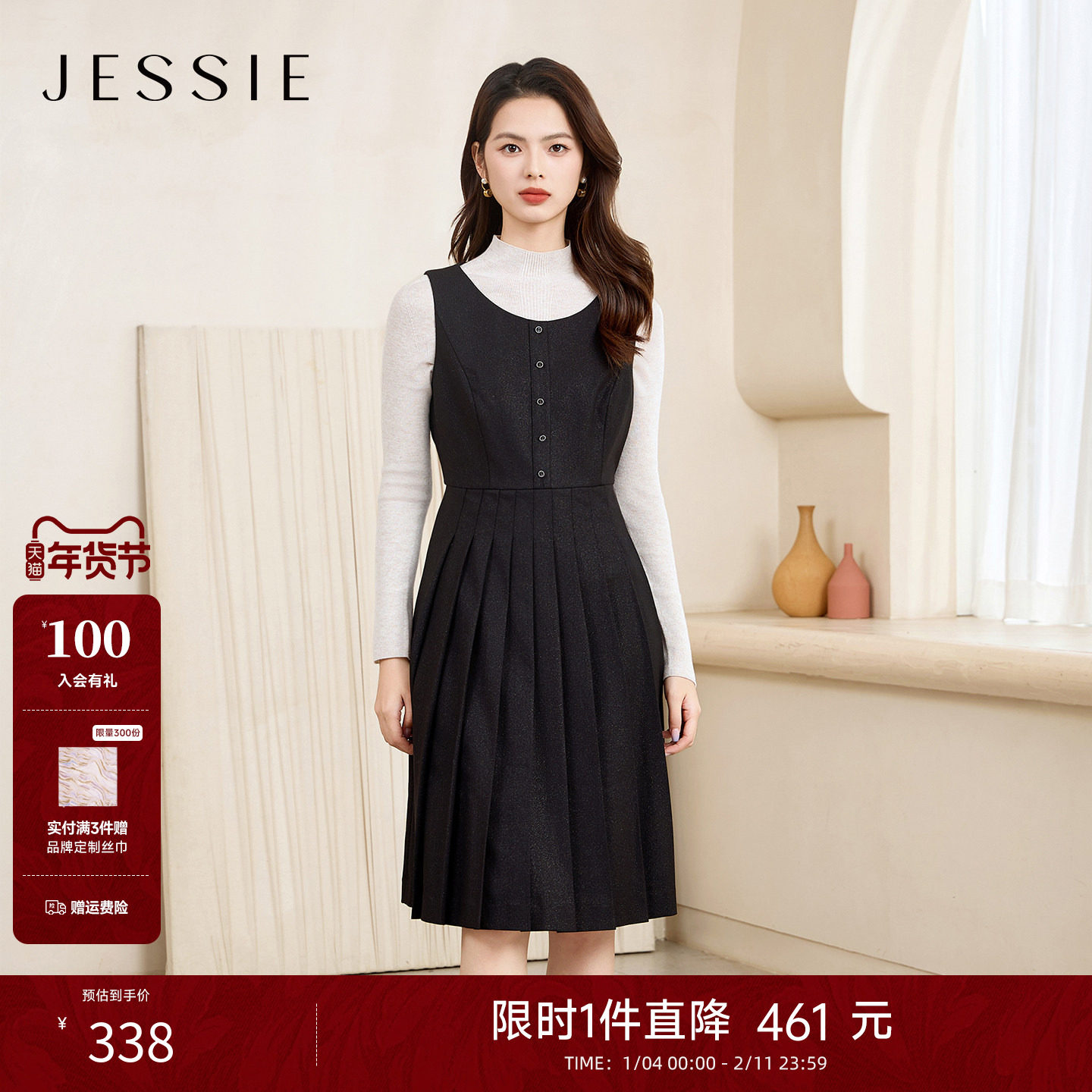 JESSIE高级感气质背心连衣裙女款2025春秋新款法式无袖百褶A字裙