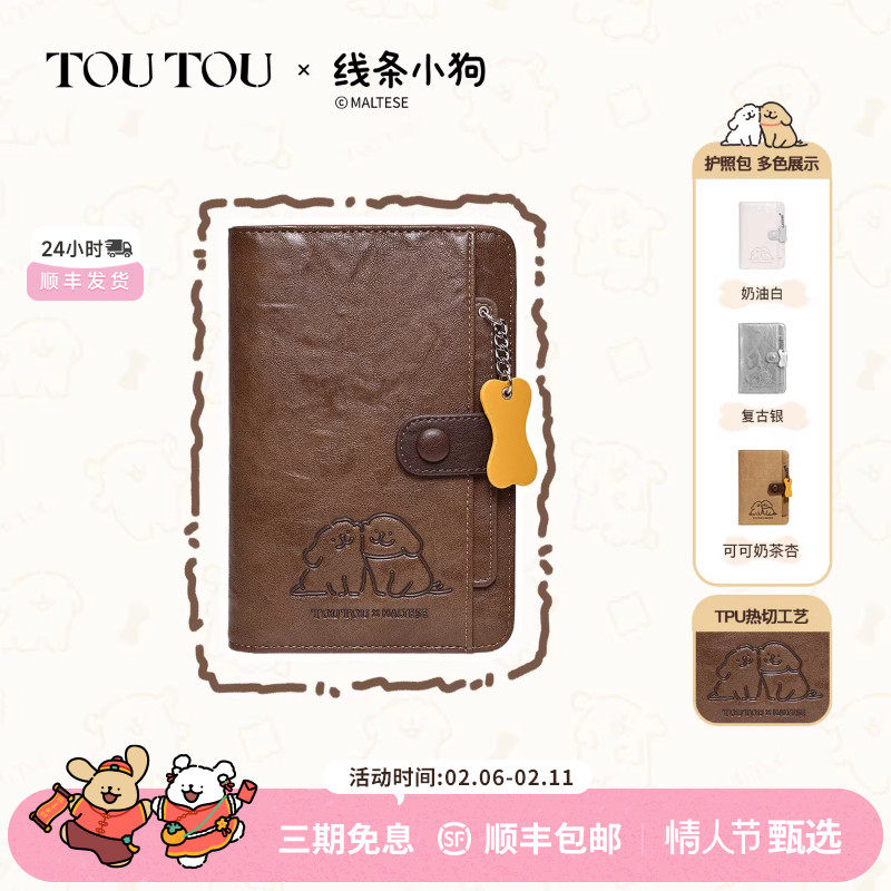 情人节礼物TOUTOU线条小狗旅行护照夹钱包证件收纳卡包女情侣男士