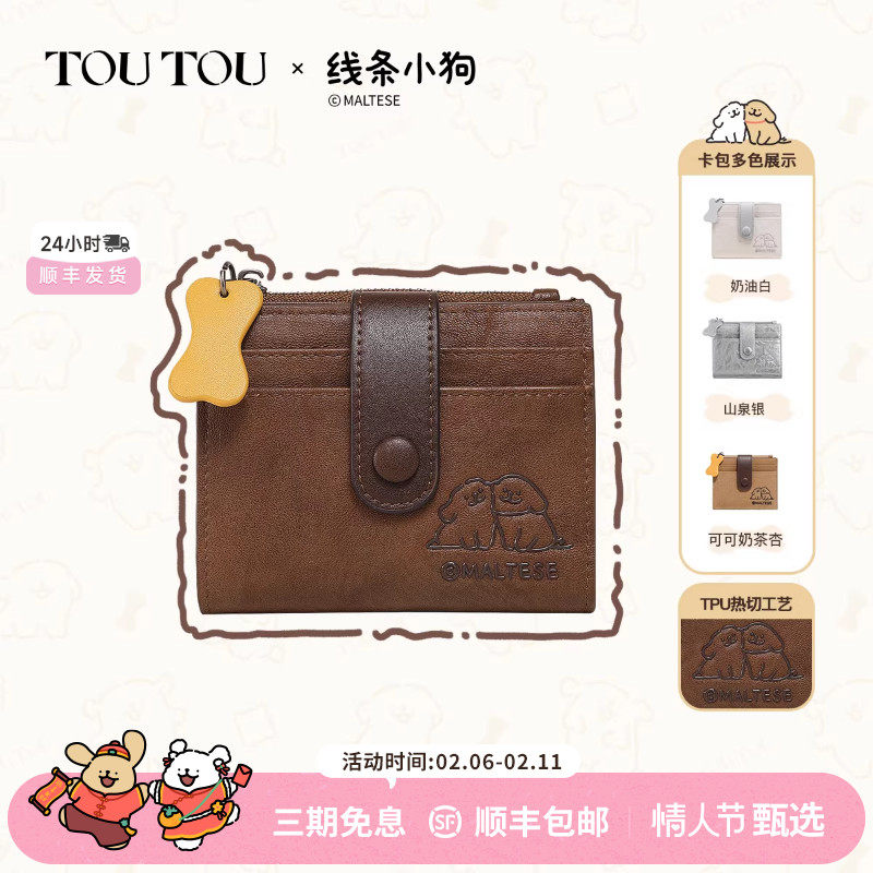 情人节礼物TOUTOU线条小狗男士钱包卡包一体证件收纳零钱护照夹女