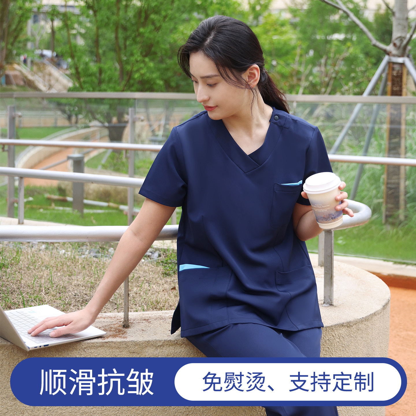 南欧鱼弹力手术服洗手衣手术衣女刷手服短袖男医生工作服医美牙科