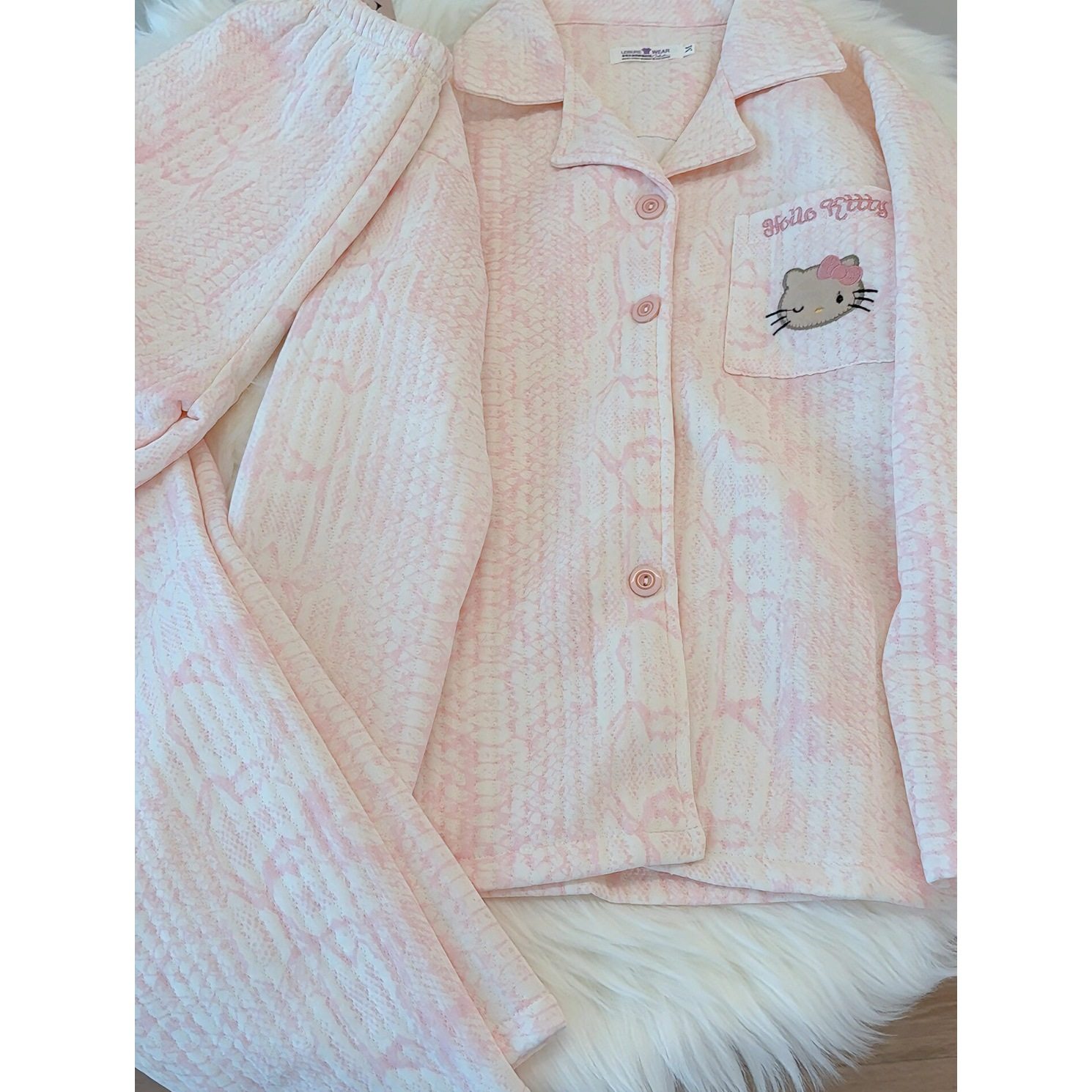 【24H发货】空气棉夹层睡衣女款秋冬2025新款蛇纹KT猫少女家居服