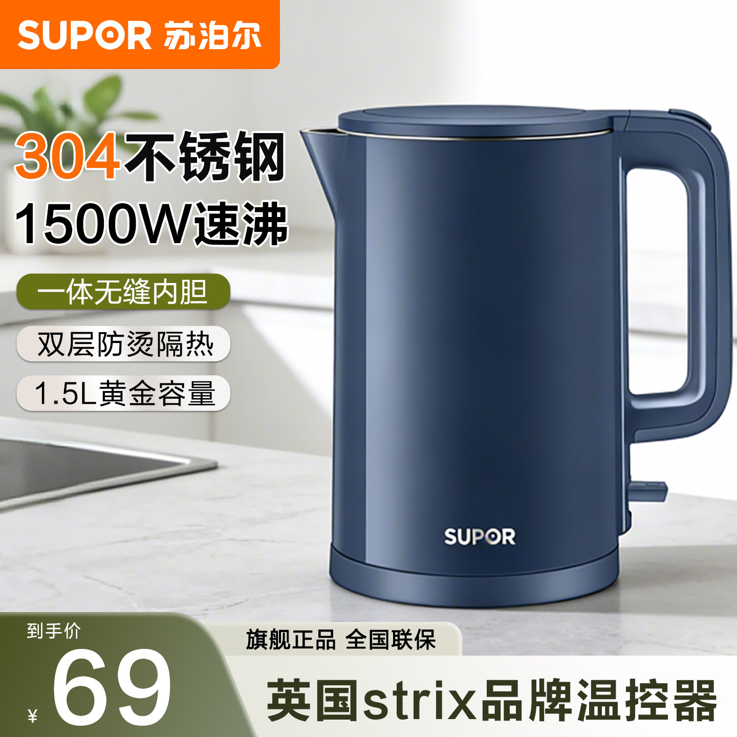 苏泊尔电热水壶家用316L不锈钢内胆1.5L大容量自动断电开水热水壶