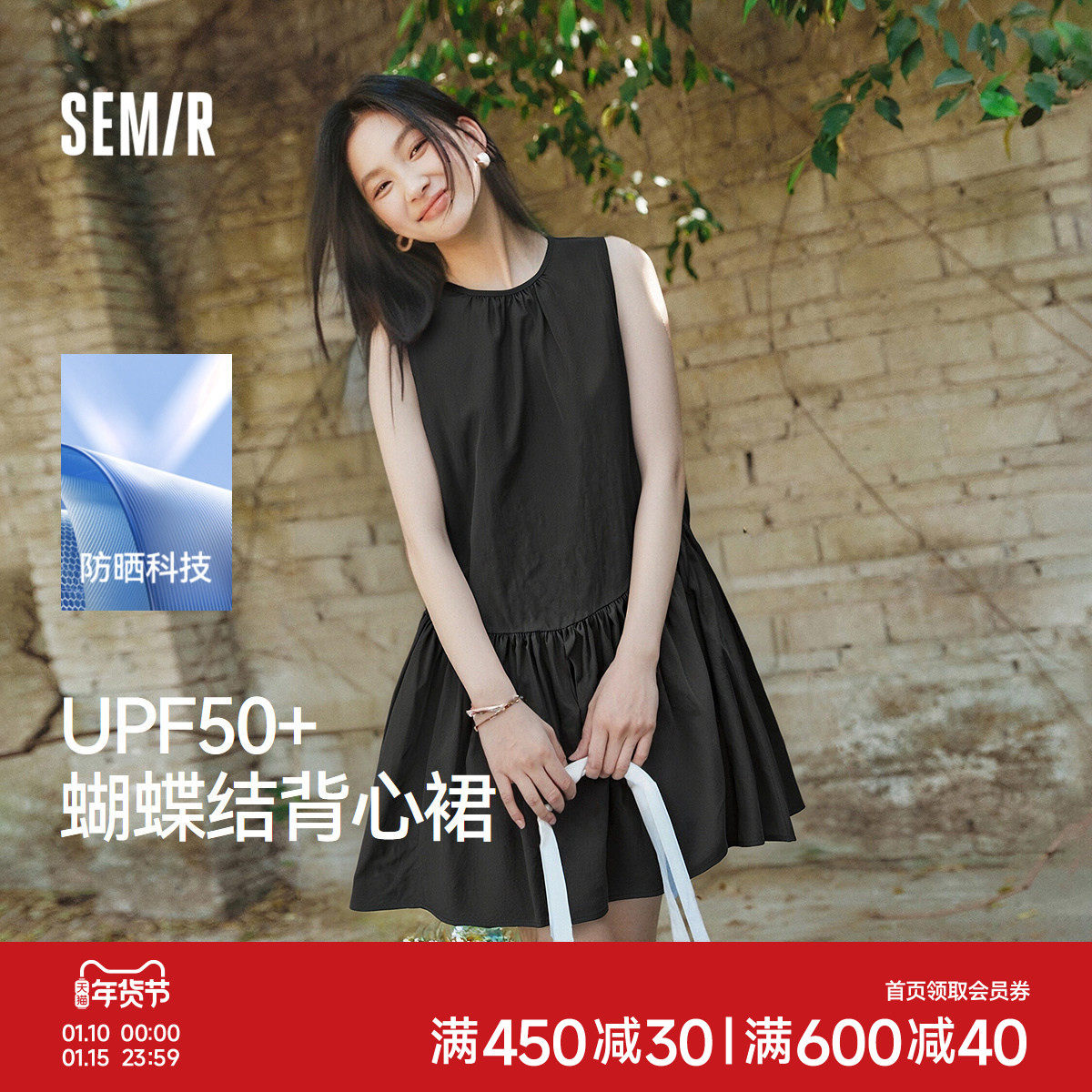 森马连衣裙女防晒背心裙温柔甜美2025夏新款蝴蝶结A字短裙少女感