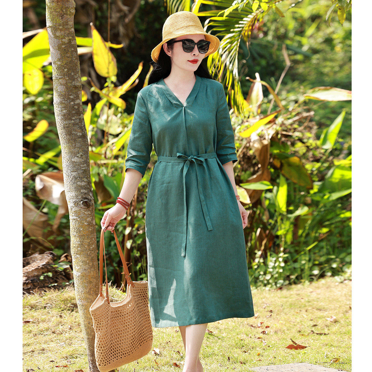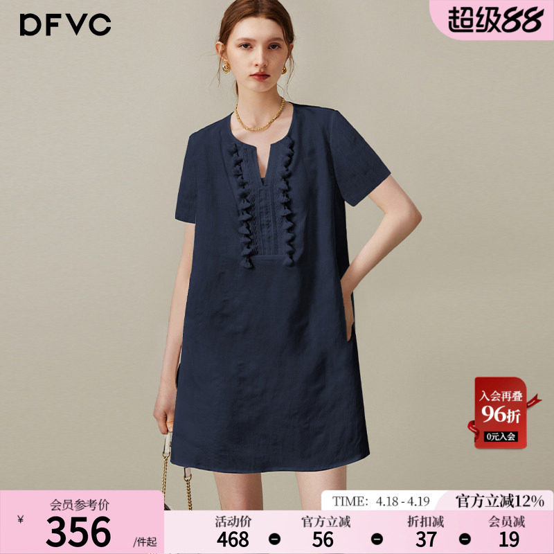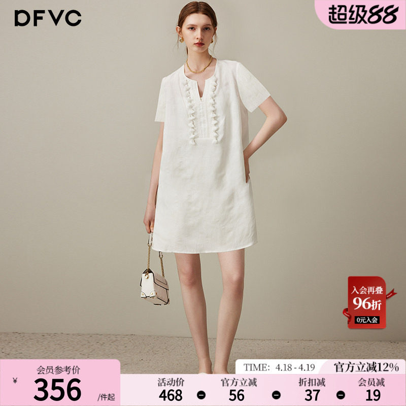 dfvc文艺天丝亚麻小个子连衣裙女2026年夏季新款V领宽松中长裙薄